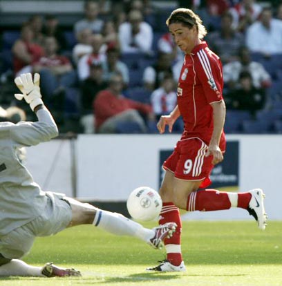 טורס בדרך לעוד שער. כיכב בניצחון ליברפול (צילום: רויטרס)