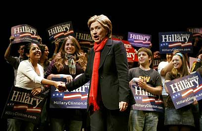 מנסה כל תכסיס אפשרי. הילארי קלינטון בכנס בחירות (צילום: רויטרס)