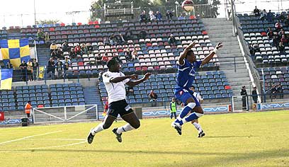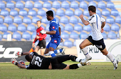 נימבה בדרך לכיבוש שער מול הרצליה, בדרמה באורווה (צילום: ראובן שוורץ)