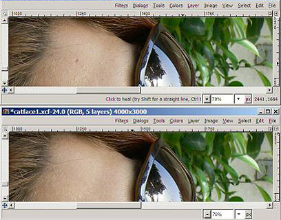 כיתוב: ה-Healing Tool מאפשר לבצע בקלות "ריטוש" לתמונות כדי להעלים פגמים.