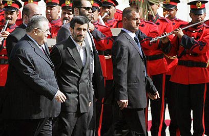 אחמדי-נג'אד סוקר את משמר הכבוד בבגדד (צילום: AFP)