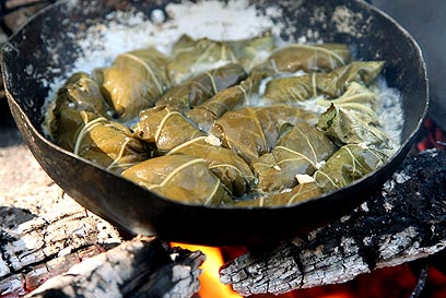 ביום חורפי-אך-נעים אחד אספנו צוות מלקטות, צלם אחד, שתי פעוטות סקרניות וטבח, ונסענו לטובה. צוות המלקטות מצא עלים למילוי, אספרג החורש לחביתה, פרחי עירית, חרדלים, חלמית (חוביזה), עלי חרחבינה מכחילה, שומר וחרצית. הן אספו לנו גם עשבי-תיבול לתה (ולתיבול, כמובן) כמו אזוב, מרווה וזוטא. עם שלל כזה הינו מוכנים לבישול. צוות המלקטות הוסב לצורכי הדלקת אש במדורת הבישול. כן, בישלנו על עצים. כלומר בהתחלה לא בישלנו כלום, העצים היו רטובים מהגשם. אבל אחרי עבודה מאומצת האש בערה מתחת לסירים, בדיוק כשהרעב כבר כמעט והכניע אותנו.