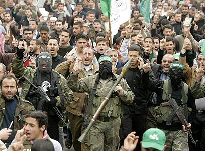 אנשי הזרוע הצבאית של חמאס מתגאים (צילום: רויטרס)