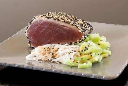 טונה אדומה צרובה עם סלט אטריות (צילום: עילית אזולאי)