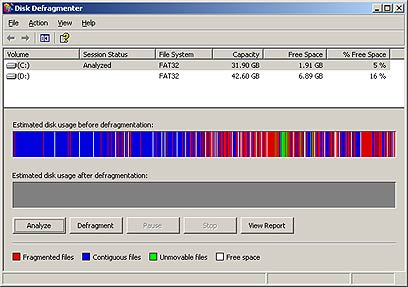 כלי הדפרגמנטציה הפשוט והזמין ביותר הוא מאחה הדיסק (Disk Defragmenter) של Windows. כדי להריץ אותו נכנסים ל-Accessories -System Tools בתפריט התוכניות (התחל- תוכניות- עזרים-כלי מערכת). אחרי שמריצים את התוכנה כל מה שנשאר לעשות הוא לבחור בכונן הרצוי, להקליק על Defragment, ולשכוח מהעניין לכמה דקות עד כמה שעות.