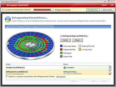 חבילת העזרים של iolo האמריקנית כוללת כלי דפרגמנטציה מתוחכם יחסית, שמצטרף להרבה מאד כלים חזקים אחרים. אנחנו לא חסידים גדולים של System Mechanic בגירסאות האחרונות - לדעתנו השינויים בממשק לא מוצלחים, קצב ההתפתחות של המוצר הפך איטי מאד, וברירות המחדל של חלק מהכלים שלו קצת תמוהות. בכל אופן, החבילה הזו עדיין מציעה כמה כלים חזקים ותוכנת הדפרגמנטציה שלה גם נראית טוב וגם מספקת גישה לכמה הגדרות מתקדמות.