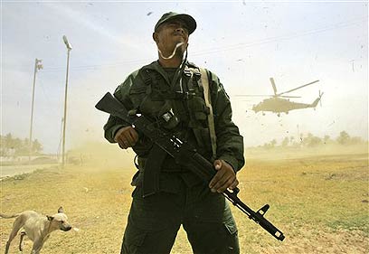 חייל של צבא ונצואלה על גבול קולומביה (צילום: AP)