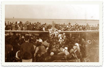 In the photo: Pilots Nuri and Ismail are seen with the large crowd that came to greet them. Even Jerusalem's dignitaries arrived in Jaffa for the occasion. Jerusalem Mayor Hussein al-Husseini can be seen on the right, dressed in a black coat and white scarf.
