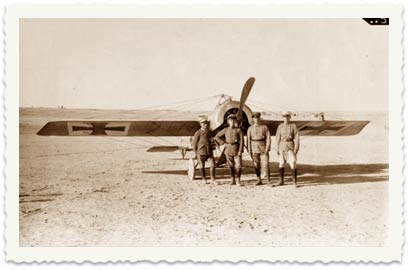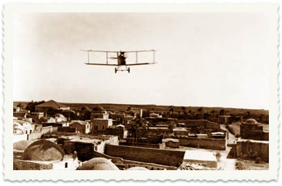 World War I brought along the first use of airplanes and armored vehicles in the battlefields. The first pilots to arrive in the Land of Israel were Frenchmen, including Jules Vedrin who landed in the fields of Mikveh Israel on December 28, 1913, and took off to Cairo.