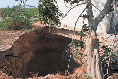 סוקרים את נחל אל מוג'יב (נחל ארנון) ואת ואדי נומיירה, מתרשמים מקניונים מרהיבים ורואים איך מאפשרים למים להגיע בדיוק עד לפתח, ואז גונבים אותם לצינור. טיפה, למעט מי שיטפונות בחורף, לא מגיעה לים המלח. כדי לבחון את התוצאה מקרוב יורדים אל קרבת הים. לפני שמתוודעים למפגעים אי אפשר שלא להתרשם מהפיתוח החקלאי: גידולי עגבניות, חצילים, פול, תירס, כרוב, כרובית ומה לא. על שפת ים המלח! ואז אתה נתקל בהם: בלב השדות, מתחת לבתים, בדמות כבישים שקרסו - בולענים מלוא העין. כאן, אגב, אין מי שיפצה את החקלאים, אז הם עובדים מסביב, מודעים לסכנות.