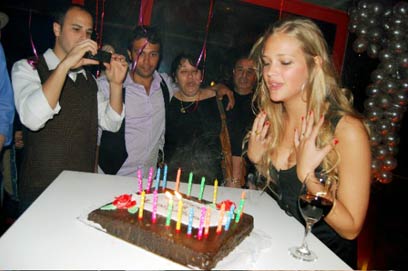 כבר בשעה שש הגיעו החברים ואילו היא הוצאה מהבית על ידי החבר.שקשר לה את העיניים ואמר לה שנוסעים צפונה. בשלב מסויים הוא עשה פרסה וחזר לבית המשפחה המעוצב בשכונת צהלה. שם חיכו לה החברים, המשפחה ושאר דוגמנים מסוכנות עלית מודלס. החגיגה נמשכה עד 12 בלילה. טוב, יש לימודים בבוקר.