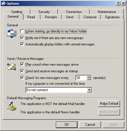 התראות על מייל ב-Outlook Express (צילום מסך)