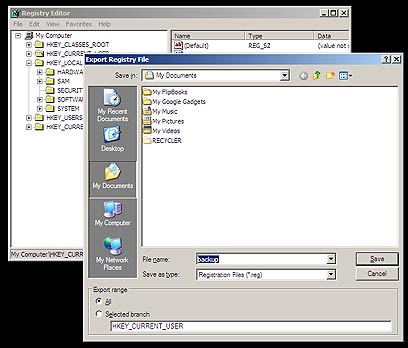 החדשות האיומות הן שאי-אפשר לעשות Undo. לגיבוי קובץ הרישום מתוך Regedit, יש לבחור קובץ, ייצוא, ולבחור בכפתור המסומן ב"הכל".