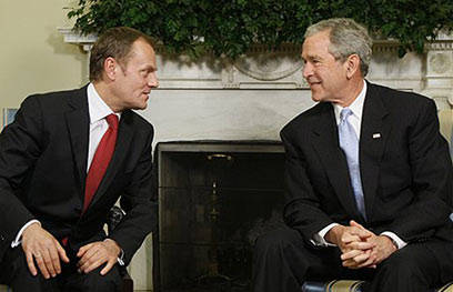 בוש וטוסק בבית הלבן. רוצה שתושבי פולין ירגישו בנוח (צילום: AP)