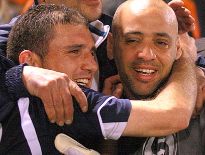 שטרית והשוער מזרחי. בדרך לרבע גמר הגביע? (צילום: אלי אלגרט)