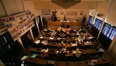 נרות בפרלמנט - ובחוץ אור יום. אל-ג'זירה תרמה להפקה? (צילום: AP)