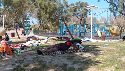 פליטים בגן בתל-אביב
