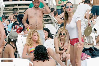 שבת. 14:00. חוף טופסי, תל אביב. יממה לאחר שהחבורה הלוהטת נטשה את חופי ישראל, ובזמן שיעל גולדמן ואורי פפר שוכנים שוב רק כמה מטרים מהם, הגיחה לה חבורה פוטוגנית אחרת, הכוללת את הילה ערן, רז שפירא ושרון מרקוביץ'. השלוש מצאו פינה שקטה יחסית והתאמנו בשיזוף. אנחנו, אגב, התאמנו בלא להזיל ריר על עצמנו. צילום: ניר פקין