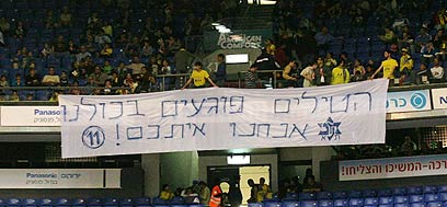 אוהדי מכבי ת"א במחווה נאה לאורחים מאשקלון (צילום: יונתן האורסטוק)