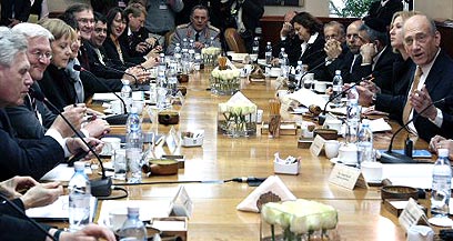 "זהו מעמד יוצא דופן, אפילו היסטורי במובן מסוים, בכל הקשור ליחסים שבין ישראל לגרמניה" - כך פתח בצהריים (יום ב') ראש הממשלה אהוד אולמרט את הישיבה המיוחדת של שרי שתי המדינות, שנערכה לאחר ביקור נציגי הממשלות במוזיאון יד ושם.