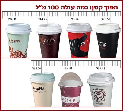 גם במגמה הזאת, מסתבר, אנחנו אשמים. "הישראלי אוהב את המנות שלו גדולות. העיניים שלנו גדולות, כמו אלו של האמריקאים," מנסה להסביר שלמה אברש (פאש,( מנכ"ל רשת קפה נטו, את המנות האימתניות שמצאנו. פאש מדגים, למשל, איך כוסות הקפה ההפוך צמחו בגודלן. בעבר היה מקובל להגיש הן ליד השולחנות והן בטייק־אווי כוסות קפה הפוך קטנות. אבל מתברר שאלה - הכוסות הקטנות עם תכולה של 160־180 מ"ל - נראו קטנות מדי ועלובות מדי לישראלים. היום, הן עדיין מוגשות למתעקשים על הגודל הזה בישיבה בבית הקפה, אבל מי שרוצים "טייק אווי" קופצים לגדלי על: 231־251 מ"ל לכוס הפוך קטנה, כפי שמדדו עבורנו במעבדה, וכ־400 מ"ל לגדולה.
