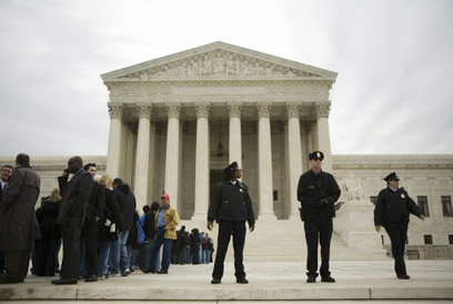 להם מותר. שוטרים חמושים מחוץ לבית המשפט העליון, היום (צילום: AFP)