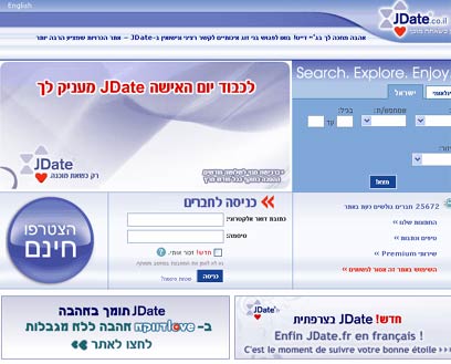 JDate - תוצאות החיפוש של החברים מבוססות אמנם על מבנה דומה לקופידון, אולם במקרה זה התצוגה הרבה יותר נוחה וברורה, בעיקר בשל הבדלים בצבעוניות ובפרטים הקטנים של עיצוב המידע, שיוצרים הבדל מהותי בתמונה הכוללת. העומס קיים גם באתר זה.