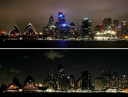 העיר סידני, לפני ואחרי ההחשכה, בחודש מרץ 2006 (צילום: איי.פי)