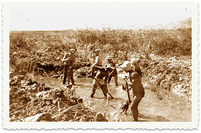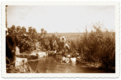 10. ילדי חפציבה רוחצים באחד מהמעיינות למרגלות הגלבוע הנקרא "הסחנה הקטנה"