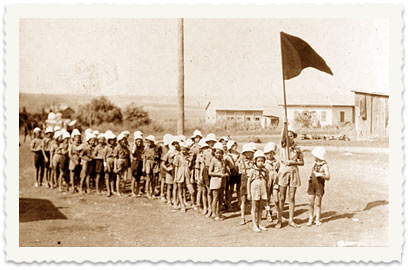 9. יוצאים למצעד אחד במאי בקיבוץ עין חרוד (לפי הכובעים הלבנים)