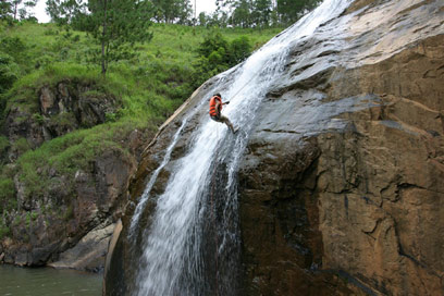 המשך הטיול כלל הליכה של 4 ק"מ בערוץ הצר, דרך שישה מפלים, ואת הדובדבן שבקצפת: חמש ירידות בעזרת חבלים, מגבהים של 18 עד 25 מטר, בתוך מפלים צוננים. לסיום קפצנו לתוך בריכת מים טבעית ממצוק בגובה 10 מ', כאשר קפיצת ההדגמה של סקיפ לא היתה מביישת ספורטאי מקצועי וכללה סלטה אחורית, מספר סיבובי בורג וצניחה מדויקת עם הראש לתוך המים.