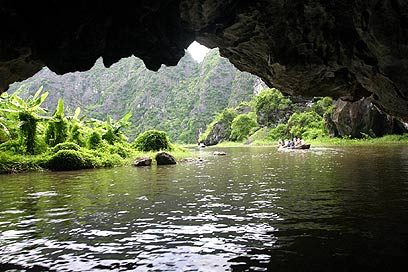 האטרקציה המפורסמת ביותר באזור נקראת טאם קוק (Tam Coc), שפירושו "שלוש מערות". המקום מכונה "האלונג ביי על שדות האורז" בשל הנוף המיוחד של הרי הגיר שנראים כאילו הם צפים בין שדות האורז. הדרך האידיאלית להתבונן בפלא הטבע הזה היא על ידי שייט בנהר נגו דונג (Ngo Dong). הגענו לנהר ובחרנו באחת החותרות בעלת סירת פח קטנטנה ושטוחה.