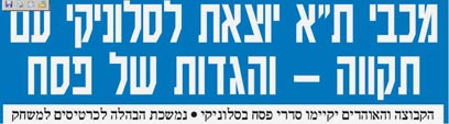 חגיגות הפסח נפתחו 24 שעות לפני הזמן ("ידיעות אחרונות", 19.4.2000)