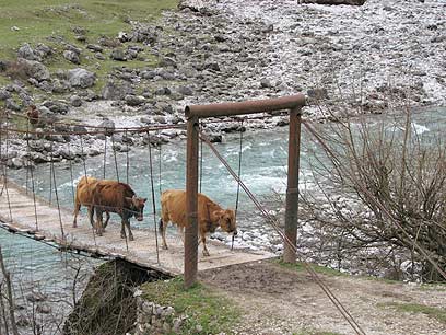 למראה נהר שוצף אני שומעת את אגים מפנטז באלבנית על ראפטינג וג'יפ ספארי. הישראלים, לעומת זאת, מתענגים על המים שצבעם טורקיז טהור. "למה המים ירוקים?", אני שואלת את דיוויד. השאלה מתורגמת לאלבנית ואגים חושב לרגע ועונה: "בגלל שהם שקופים". דיוויד מתרגם, אבל צוחק עליו באנגלית, "הרי למים שקופים אין צבע".