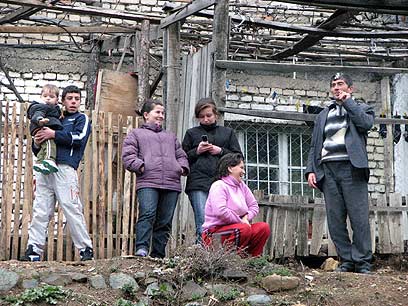 סלולרי משוכלל כבר יש. משפחה על רקע ביתה
