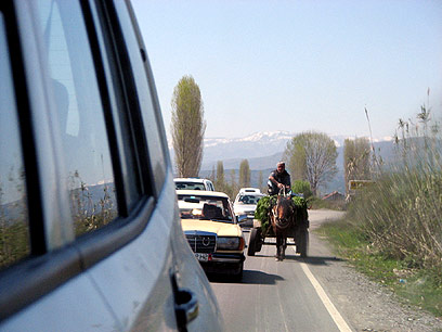 הבתים נראים חדשים ברובם, ותנופת בנייה ניכרת לאורך הכביש. "זה ה-high way of the north", אומר דיוויד בהתייחס לכביש בעל נתיב אחד לכל כיוון. בכל כמה מאות מטר ניצבת תחנת דלק חדישה יותר או פחות, ובכל כמה עשרות מטרים ניצב שלט נוצץ וחדש או ישן ומאולתר שמכריז: lavazh (שטיפת מכוניות). כמות הרכבים שעל הכביש - למרות שרובם חדשים יחסית, שאריות של גרמניה שנמכרות כאן בזול - לא נראתה כמצדיקה את המאמץ, אבל ניחא.