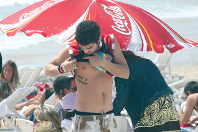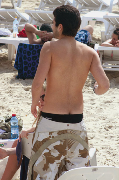 כהן, כצפוי, קפץ לבקר בחוף הים של תל אביב, כאשר הוא חושף את הקעקוע החדש שעשה בניכר ובו כתוב: keep dreamin (בתרגום חופשי, "תמשיכו לחלום"). מי שלא זכה להציץ בקעקוע החדש שלו ונעמד מאחוריו, הרוויח לעצמו הצצה פוטוגנית לא פחות לחריץ של הכוכב.