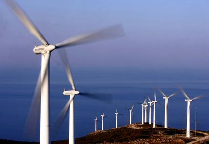 חוות טורבינות על החוף ביוון (צילום: AFP)