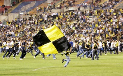 שעות ספורות לאחר שהשופט אלון יפת העביר היום (ב') את דו"ח השיפוט מהמשחק בין בית"ר ירושלים למכבי הרצליה, שהופסק אמש בדקה ה-87. גיבש תובע ההתאחדות לכדורגל, שלום אבן עזרא, כתב אישום נגד בית"ר בגין התפרעות אוהדים והתפרצות אוהדים לשדה משחק. כזכור, אוהדי האלופה פרצו למגרש וגרמו להפסקתו ובסיום אף לפיצוצו. הדיון במקרה צפוי להיערך ביום חמישי בשעה 13:00.