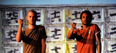 40 רקדנים מלהקת בת שבע ומהאנסמבל משתתפים בעבודה עתירת הטכנולוגיה, שבה מקבלים הרקדנים הוראות באזנייה.