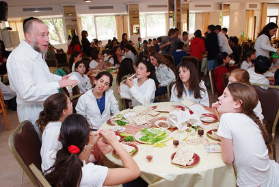"מה לנו וליציאת מצרים המרוחקת, או יותר נכון, מה מסמל עבורנו חג החרות?", שואל את עשרות הילדים הרב שמואל אהרן ברודמן, הלובש "קיטל" צחור לכבוד המאורע החגיגי, וכבר פותח בעריכת "קדם הסדר" המלווה בשירים, בהסברים מרתקים, במנהגי המסורת והקשרם האקטואלי, וכמובן, איך לא? במצות, מיץ ענבים וחרוסת.