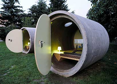 חלומו של האדריכל אנדריאס שטראוס קרם עור וגידים והיה בשנת 2005 למציאות, עם פתיחתו של Das Park Hotel על גדת הדנובה בעיר אוטנשטיים, הסמוכה ללינץ. זהו מלון שחדריו בנויים בתוך צינורות בטון במשקל תשעה טון, המשמשים בימים כתיקונם כצינורות ביוב. החדרים מעוצבים בקפדנות ספרטנית אך אלגנטית, והשירותים והבר נמצאים בסמוך לחדרים. המעוניינים יכולים להזמין חדרים באתר האינטרנט של המלון ולקבל קוד כניסה שבאמצעותו ייכנסו לחדר עם הגעתם. והמחיר? כטוב בעיניכם.