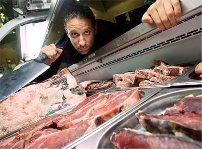 לפני ימים ספורים שב ויה ממסע של חודש וחצי באוסטרליה, שם הסתובב בין עדרי בקר וכבשים, חרש אטליזים ומשחטות וחזר מוקסם במיוחד. אין הרבה אנשים שיחזרו מוקסמים ממשחטה, אלא אם יש להם פטיש לבשר, כמו במקרה דנן. פירוק בשר, מספר ויה, הוא התענוג הגדול ביותר עבורו, וריחו החמצמץ של דם רענן גורם לו אושר אמיתי.