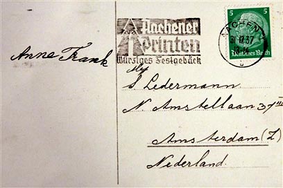 את הגלויה שלחה אנה פרנק לידידה כשהייתה בת שמונה. מנהל בית ספר באזור אמסטרדם מצא אותה בקופסת ברכות בחנות העתיקות של אביו. מוזיאון אנה פרנק: הגלויה מקורית