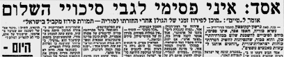 הכותרת "אסד: איני פסימי לגבי סיכויי השלום" לא נלקחה מעיתון של הימים האחרונים, אלא מ-11 במארס 1974 - על רקע שיחות ההפרדה אחרי המלחמה. "אני מוכן לפירוז זמני של הגולן אחרי החזרתו לסוריה - תמורת פירוז מקביל בישראל", צוטט אז הנשיא חאפז אסד, אביו של בשאר, מתוך ראיון למגזין "טיים".
