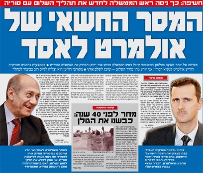 ולמי שזיכרונו באמת קצר, נציין שרק בקיץ החולף, בדיוק 40 שנה לאחר כיבוש הגולן, ניסה אולמרט לחדש את השיחות עם הסורים והעביר מסר לאסד: אני יודע מהו מחיר השלום - ומוכן לשלם אותו. אז מה נשתנה?