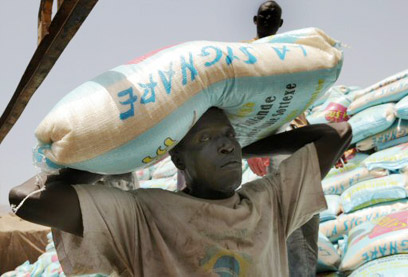 משבר עולמי: פועלי אורז בסנגל (צילום: AFP)