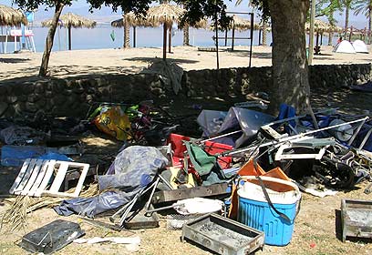 רק היום (יום ג'), שלושה ימים אחרי החג, הצליחו המשרד להגנת הסביבה ומינהלת הכנרת להשתלט על כמויות האשפה האדירות שנשארו בחופים. ממנהלת הכנרת נמסר שלא רק אשפה השאירו המטיילים אחריהם, אלא גם הרס לא מבוטל של מתקני שנועדו לשרת אותם - מתקני שירותים כימיים, ספסלים ושולחנות פיקניק וכ"ד. החופים שסבלו במיוחד מהמטיילים היו חוף לבנון, חוף גולן וחוף דוגה.