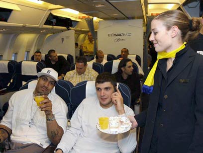 שרף, השחקנים וחברי ההנהלה המריאו למדריד בטיסת אל על וישובו ארצה ביום שני בערב, אולי בתוספת למטען חריג - גביע. בטיסה הבוקר יצאו כ- 200 נוסעים, חלקם גם עיתונאים ואוהדים.