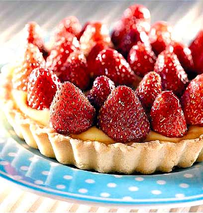 - הרכבה: סמוך להגשה מורחים את קרם הפטיסייר על הבצק. מניחים את התותים על הקרם ומגישים.